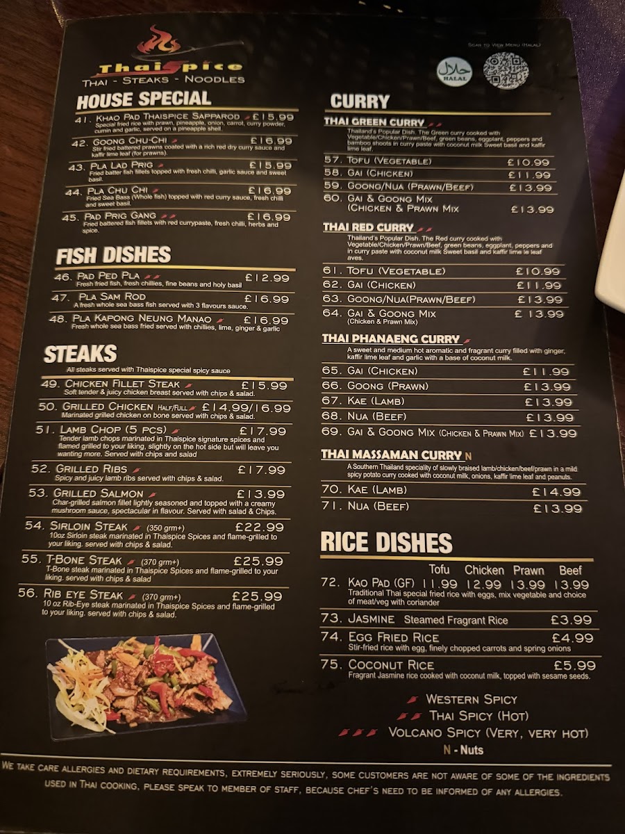 Welcome to Thaispice London, where authentic Thai flavors come alive in a warm and inviting setting at 292 Hackney Rd, London. Their menu is a delightful exploration of traditional dishes, featuring standout items like Pad Thai and Khao Pad, each expertly crafted with fresh ingredients for just £12.99. For appetizers, discover the crispy Prawn Crackers and flavorful Satay Gai, marinated and grilled to perfection, ensuring every bite is packed with taste.